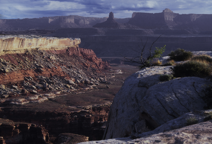 19-20. Backpacked out to the Confluence Overlook, spending two nights there with a day hike to Water Canyon. The Green River is flowing through Stillwater Canyon. At the top is The Island in the Sky.