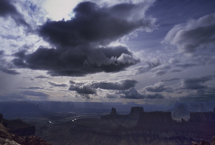 18. Thunderclouds over the Needles. I took this in the Needles District in 1983 but since they are visible from many areas of the Maze, and similar formations are in the Doll House, I included