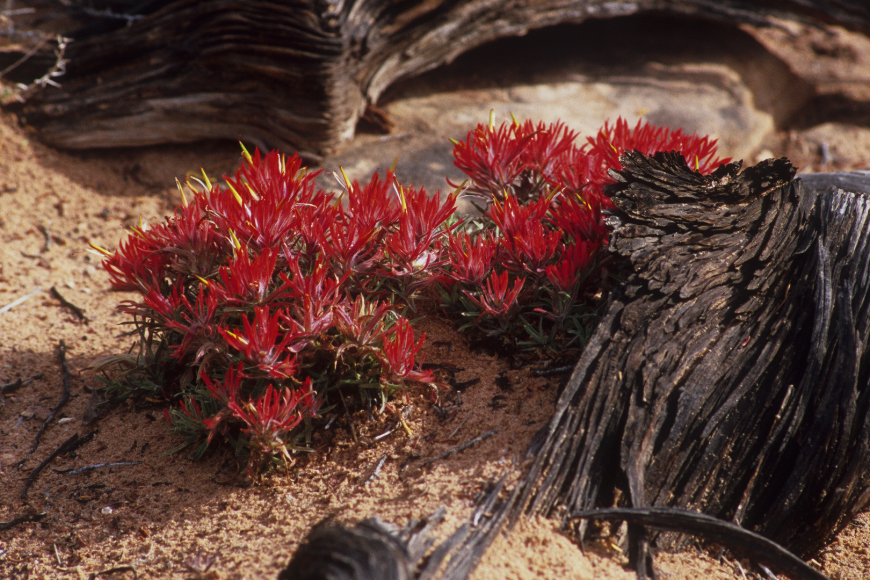 19-21. Utah Still Life; above the Maze: Indian Paintbrush and Claret Cup Cactus were delightful surprises along the trails; Chimney Rock and Standing Rock with the Henry Mountains in the